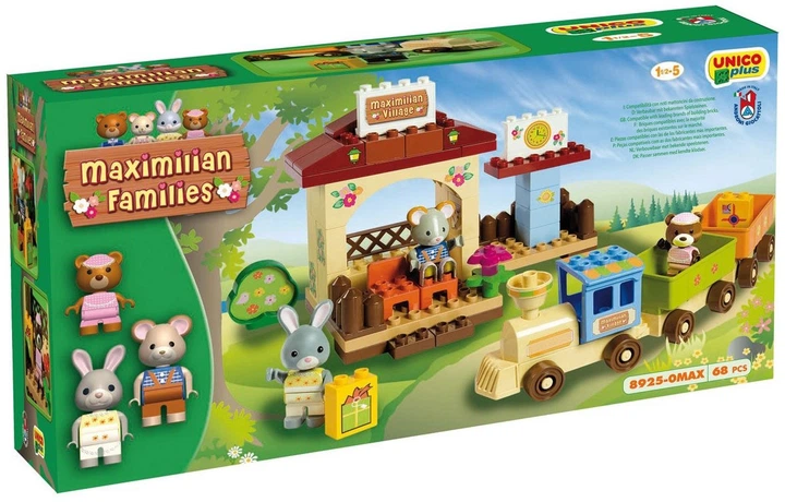 «Maximilian family: Train Station» від Unico – це набір із 68 елементів, який дозволить вашій дитині побудувати платформу залізничного вокзалу. Набір містить 3 фігурки тварин (мишку, ведмедика та кролика), поїзд та інші аксесуари, необхідні для створення справжнього залізничного вокзалу. Набір допоможе розвинути моторику, просторову уяву та креативність вашої дитини. Вони сумісні з іншими брендованими будівельними блоками для дітей молодшого віку. Виготовлені в Італії з високоякісного пластику.
