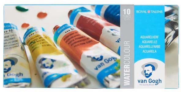 Акварелі Ван Гога класифікуються як серія для студентів та художників. Кольори яскраві, прозорі та інтенсивні, а фарба дуже стійка. Більшість кольорів мають найвищий рейтинг світлостійкості +++, що означає понад 100 років у музейних умовах, тоді як деякі кольори мають рейтинг світлостійкості лише на один клас нижчий, тобто ++, що означає 25-100 років у музейних умовах. Завдяки своїй чистоті та рівномірній в'язкості, всі ці акварелі легко використовувати та змішувати. З гордістю вироблені в Нідерландах під суворим контролем якості, ми гарантуємо стабільний досвід з кожною покупкою. Цей набір акварельних фарб містить 10 тюбиків по 10 мл у таких кольорах: - Китайський білий 108.
