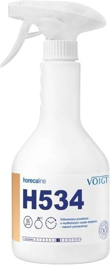 H534 — це готовий до використання професійний освіжувач повітря, який ефективно усуває неприємні запахи та наповнює приміщення інтенсивним приємним ароматом апельсина. Завдяки своїй формулі він діє швидко та залишає тривале відчуття свіжості.