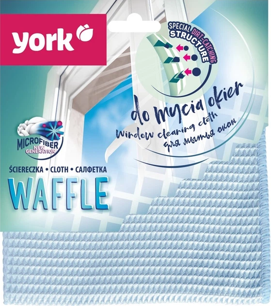 Серветка York Waffle з інноваційною структурою вафель, не залишає розводів і подряпин, дуже швидко сохне. Призначена для ефективного миття вікон, дзеркал та скляних стільниць.