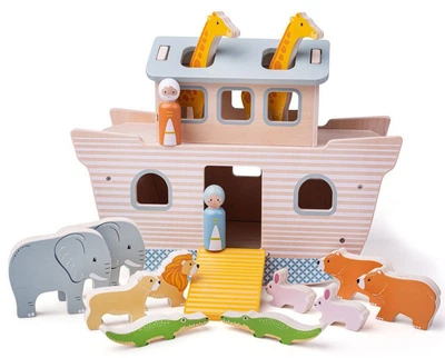 Дерев’яний ігровий набір Bigjigs Ноїв ковчег з фігурками тварин 100% FSC 15 деталей (2999768) (0691621800133) Залишити відгук Немає в наявності