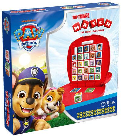 Top Trumps Match: Psi Patrol.Poczuj emocje towarzyszące akcjom ratunkowym w Zatoce Przygód! Top Trumps Match Psi Patrol powraca w nowej, odświeżonej wersji wizualnej. To dynamiczna gra logiczna typu „pięć w rzędzie”, która łączy w sobie proste zasady z elementami strategii i sprytu. Dołącz do Marshalla, Chase’a, Skye oraz reszty ekipy Rydera i sprawdź, czy uda Ci się przechytrzyć przeciwnika w tej kultowej rozgrywce.Kluczowe cechy:• Odświeżony Design: Kostki i karty zyskały nowoczesny, jeszcze bardziej przyjazny dzieciom wygląd. Ulubieni bohaterowie prezentują się teraz wyjątkowo uroczo!• Idealna w Podróż: Cała gra mieści się w kompaktowym, zamykanym pudełku, które po otwarciu staje się stabilną planszą. Brak luźnych elementów podczas transportu sprawia, że to idealny wybór na wakacje, piknik czy wycieczkę.• Proste Zasady, Wielkie Emocje: Gra przeznaczona jest dla dzieci od 4. roku życia, co czyni ją idealnym wyborem na pierwszą grę logiczną dla rodzeństwa i przyjaciół.Jak grać? Instrukcja w kilku krokachZasady są intuicyjne, ale wymagają skupienia – sytuacja na planszy może zmienić się w każdej sekundzie!1. Przygotowanie: Każdy gracz otrzymuje dwie tajne karty bohaterów (nie wolno ich pokazywać przeciwnikowi!).2. Początek: Młodszy gracz wypycha pierwszą kostkę z lewego górnego rogu planszy na drugą stronę.3. Ruch: Kolejny gracz bierze wypchniętą kostkę i używa jej, aby wypchnąć dowolną inną kostkę na planszy, starając się stworzyć linię ze swojej postaci.4. Cel: Wygrywa osoba, która jako pierwsza ułoży rządek 5 identycznych postaci (pionowo, poziomo lub po skosie) i krzyknie Match!5. Niespodziewany zwrot akcji: Jeśli ułożysz Match, ale przeciwnik ma na swojej tajnej karcie bohatera, którego właśnie ułożyłeś – to on przejmuje Twoje zwycięstwo i wygrywa całą partię!Wskazówka dla zaawansowanych: Spróbuj ułożyć postać, którą masz na swojej tajnej karcie – to trudniejsze, ponieważ przeciwnik może blokować Twoje ruchy, ale daje ogromną satysfakcję!W pudełku znajdziesz:• 1 zamykaną, rozkładaną planszę do gry,• 25 kolorowych kostek z postaciami Psiego Patrolu,• 15 kart z bohaterami,• Instrukcję obsługi.Uwaga: Produkt zawiera małe elementy. Nieodpowiedni dla dzieci poniżej 3 roku życia.
