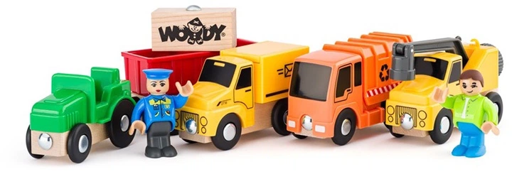 • Skład zestawu: 8 drewnianych pojazdów użytkowych z kierowcami