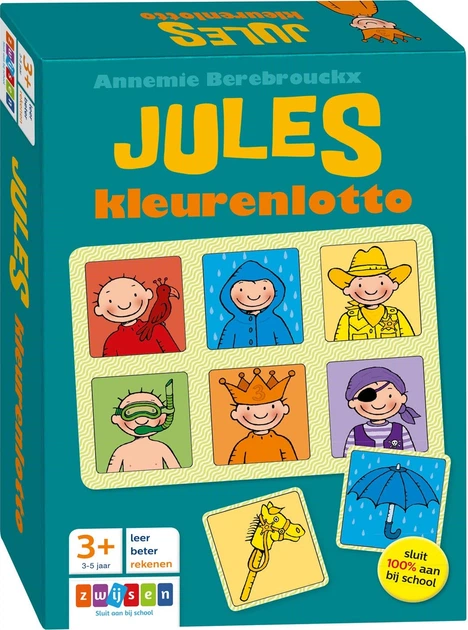 W tej grze w lotto dzieci uczą się zbierać karty z odpowiednim kolorem i motywem razem z Julesem. Poprzez zabawę dzieci uczą się rozpoznawać kolory i przedmioty, które do siebie pasują. Kto ma pomarańczowe ciastko, które pasuje do pomarańczowego, urodzinowego Julesa? A kto ma żółty but pasujący do żółtego kowboja Julesa? Dzieci zbierają karty na własnej planszy. Wygrywa ten, kto pierwszy zapełni swoją kolorową planszę. Świetna zabawa dla osób w każdym wieku!