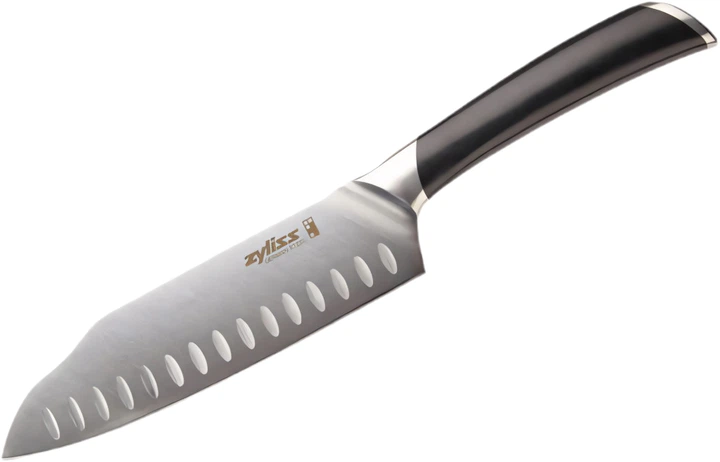 Nóż Santoku Zyliss Comfort Pro o długości 18 cm został zaprojektowany z myślą o długim okresie użytkowania — wytrzymała niemiecka stal nierdzewna wytrzyma nawet krojenie najtwardszych produktów.